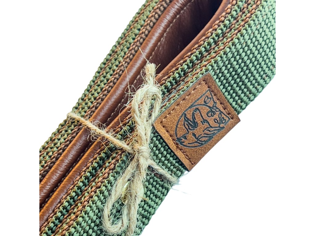 Barevná kombinace hnědé a zelené doplněná o kožené a zlaté prvky mu dodává prémiový vzhled, který ladí s našimi obojky a dalšími výcvikovými pomůckami Canis Tools.